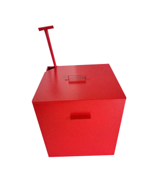 Arenero de chapa. Pintado con pintura 100% poliéster. Color rojo: RAL 3000. Dimensiones (alto x ancho x fondo): 350x400x140 mm.