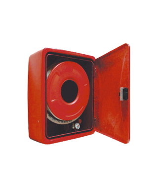 Boca de incendios de configuración horizontal. Puerta encastrada ciega. Devanadera abatible fabricada en termoplástico copolímero según ISO 4892-2. Equipada con: Manguera semi-rígida de 25 mm. y 20 m. de longitud. EN-694. Lanza de triple efecto. Rosca hembra 1” (Ø 10 mm.). Válvula de corte en latón cromado para manómetro. Rosca 1/4”. Desmultiplicador para accionamiento de válvula, con arrastre metálico. Pintada en pintura 100% poliéster. Color rojo RAL 3.000. Dimensiones (alto x ancho x fondo): 650 x 650 x 260. Fabricada según norma UNE-EN 671.